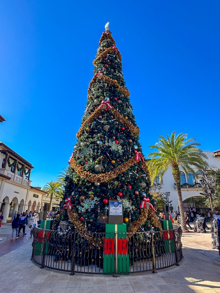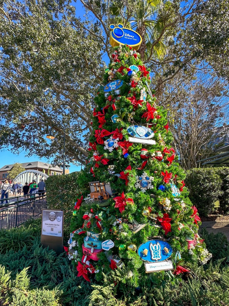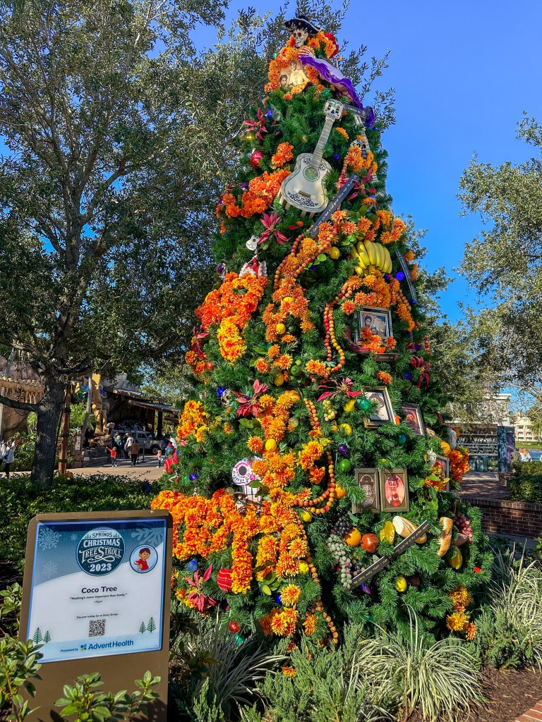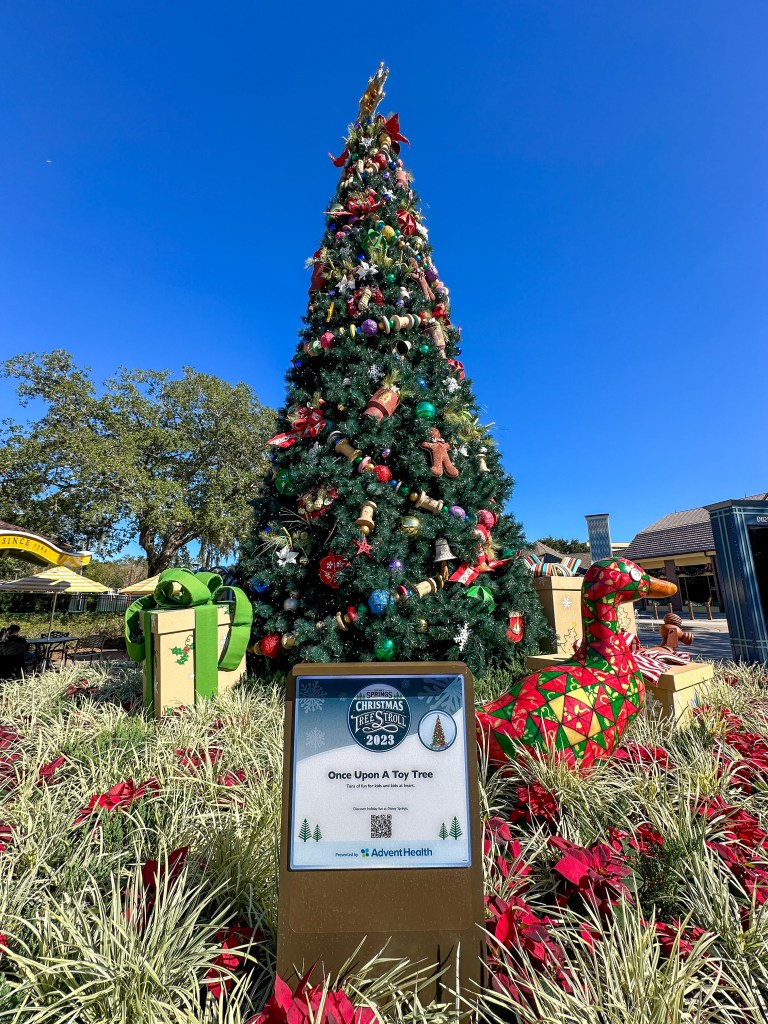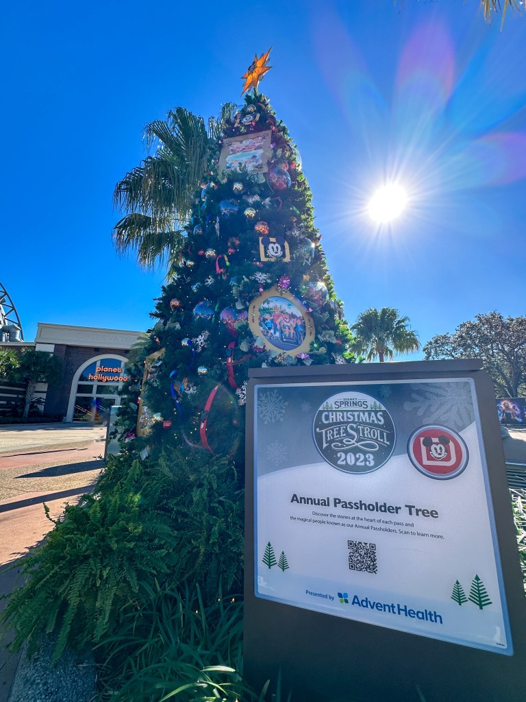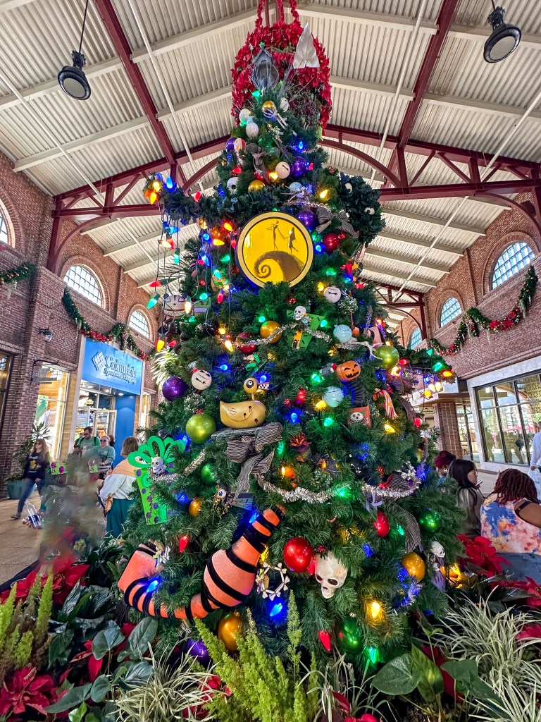 Disney Springs is a popular Orlando destination for shopping, dining and entertainment. During the holidays the entire property is decked with beautiful holiday decor, including 19 beautiful Christmas trees. These trees are part of an annual activity called the Disney Springs Christmas Tree Stroll.