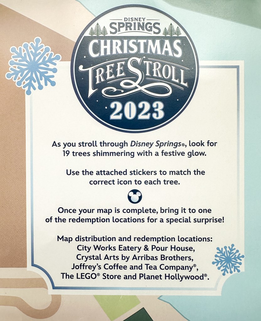 There are four map distribution and redemption locations throughout the property. Those locations are listed on the map. I got mine from Joffrey’s Coffee and Tea Company. You can also download a PDF of the map from the Disney Springs website here.
