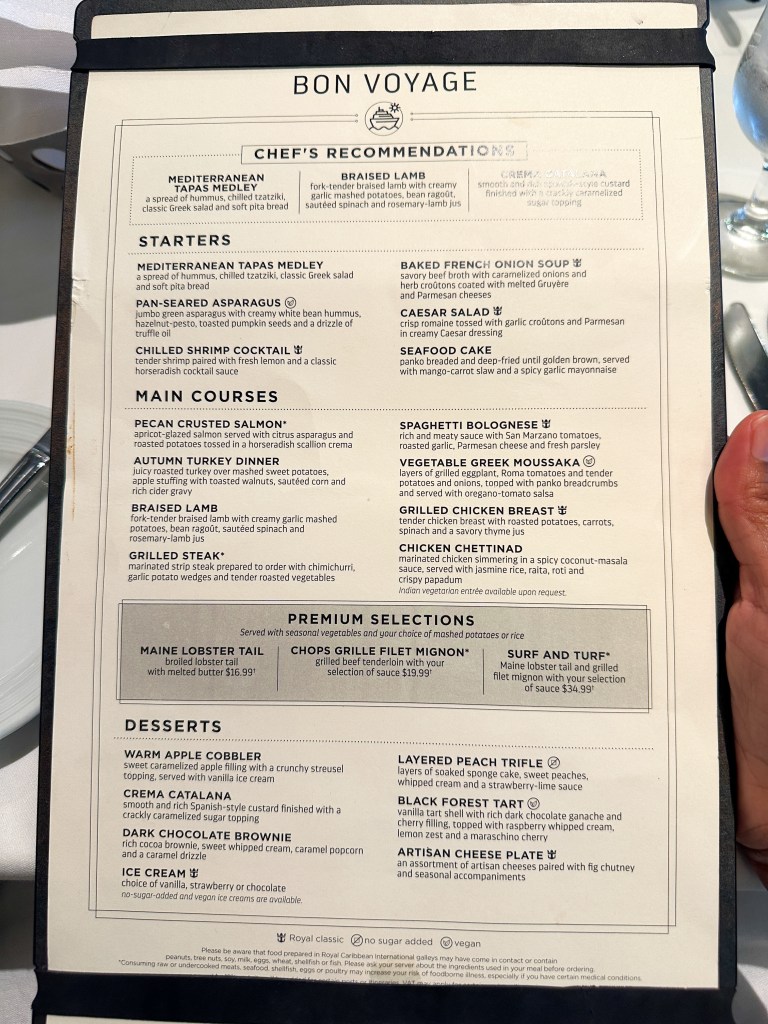 Specialty dining is also available on most cruises at an additional cost. Trust me when I say the menu options and service is worth every penny.