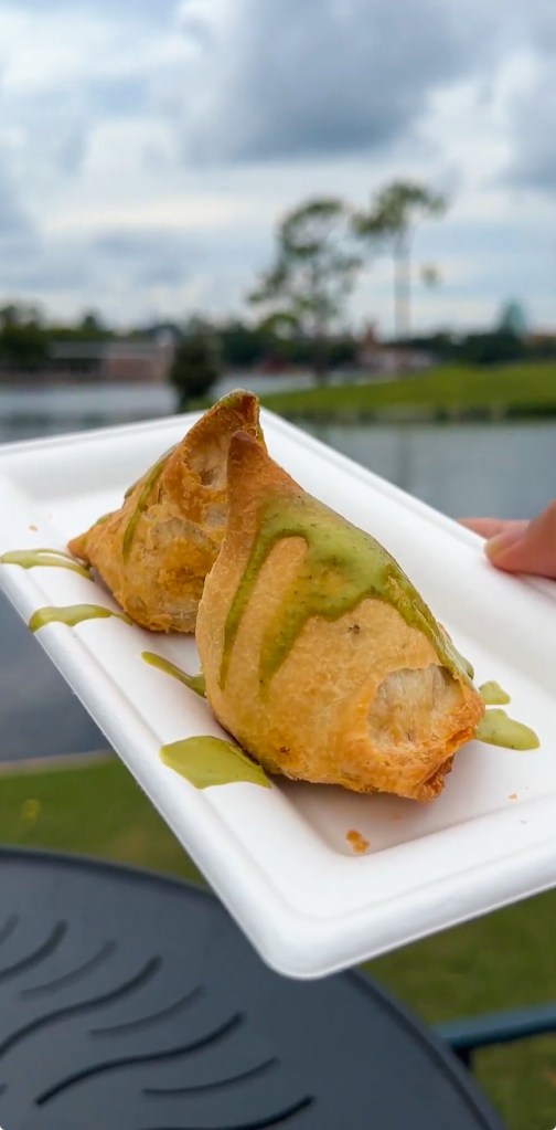After finishing up in Japan I made my way across World Showcase to the India booth. I ordered both offerings available, starting with the Potato and Pea Samosa.