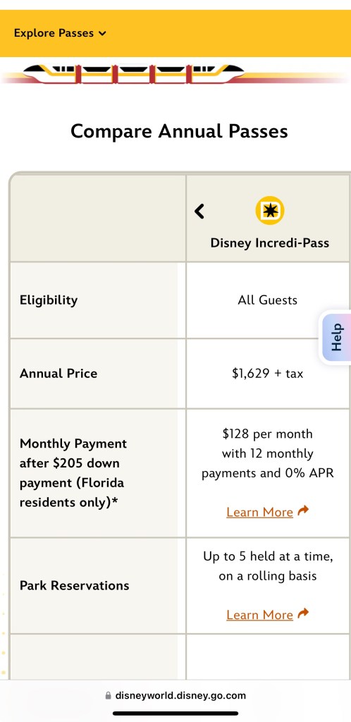 Both passes offer pay in full or FlexPay options with a down payment and 0% APR. The difference between the two is the down payment and monthly payment amounts. I’m not sure which I love more, the FlexPay option or 0% APR because both make the Incredipass more affordable.